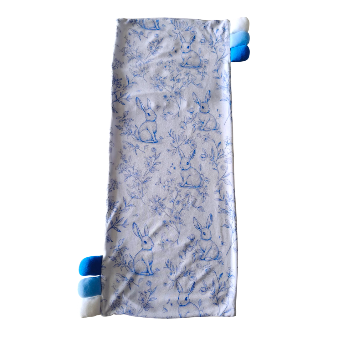 Elegant toilè design with gentle bunnies, fluttering butterflies and blooming fields captured in beautiful hand-drawn details.