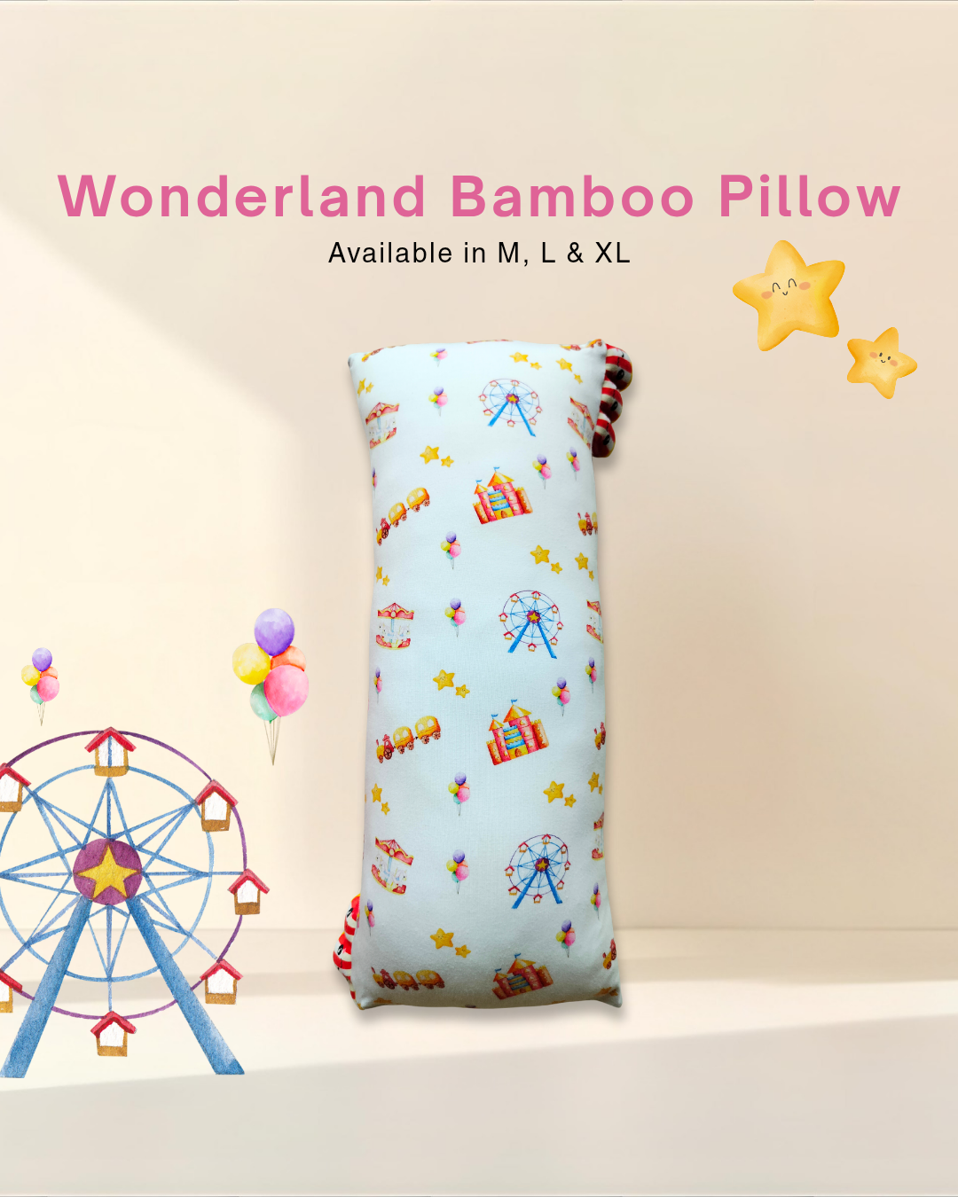 Step into a world of joy with Wonderland – our enchanting bamboo pillows featuring cheerful carousels, bouncy castles and dreamy Ferris wheels. Designed to spark giggles and soothe little hearts, each pillow comes with popcorn taggies for calming comfort and sensory delight.